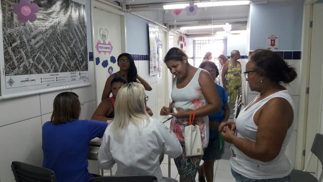 Na USF Quintas, zona Oeste, foram 90 consultas clínicas, 37 preventivos, 85 atendimentos odontológicos, 100 testes rápidos de HIV, sífilis e hepatite B, 80 testes glicêmicos, 56 aplicações de vacinas e 16 solicitações de mamografia.