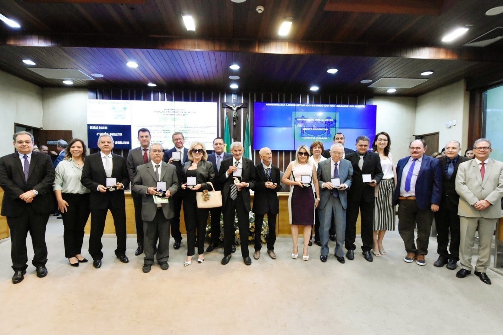 No lançamento e entrega da Medalha do Mérito Esportivo Marinho Chagas, na Assembleia Legislativa, a trajetória de personalidades que abrilhantaram o futebol potiguar foi destaque na sessão solene conduzida pelo presidente da Casa, deputado Ezequiel Ferreira (PSDB). A solenidade da manhã desta segunda-feira (11), no plenário da Casa, prestigiou dez ícones do passado e do presente que comprovadamente deram relevante contribuição ao Estado.