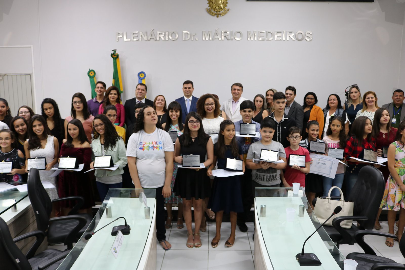 Na oportunidade, os 36 estudantes receberam das mãos de vereadores, secretários de estado e município, além de gestores e professores, placas de homenagens e diplomas. Os alunos homenageados foram escolhidos pela direção de suas respectivas instituições de acordo com o desempenho de suas atividades estudantis e do sistema de avaliação de cada escola, que indicou dois estudantes.