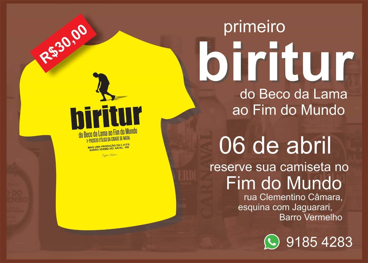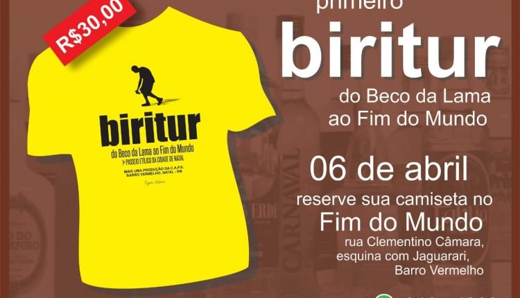 Serviço:Biritur – 1º Passeio Etílico da cidade do NatalSábado – a partir das 13hBeco da Lama e Rua Clementino Câmara – Barro Vermelho