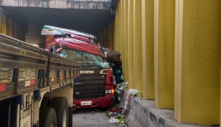 Carreta bate dentro de túnel e interrompe trânsito em Natal