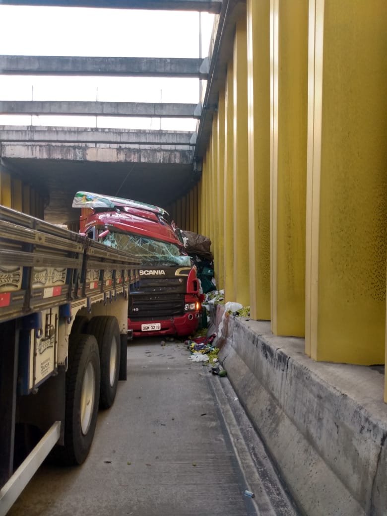 O motorista da carreta disse que houve um problema com a direção, que travou, e fez o veículo bater na parede do túnel. O acidente aconteceu ainda na madrugada, por volta das 4h. Parte da carga ficou espalhada pela via, atrapalhando ainda mais o trânsito no local.