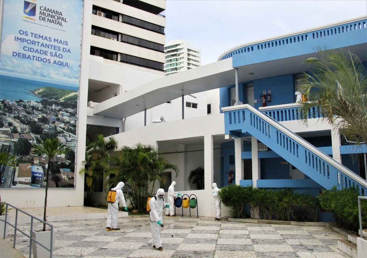 Prédio da Câmara de Natal recebe serviço de desinfecção contra o coronavírus