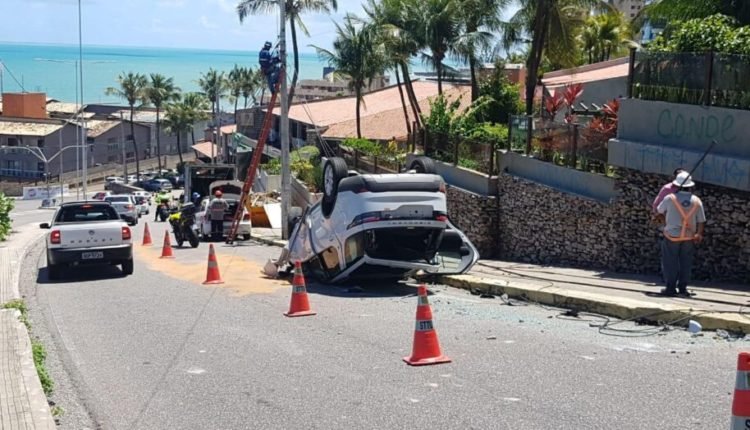 Um carro capotou na ladeira do sol em Natal na madrugada desta quinta-feira, 10. Segundo a Secretaria Municipal de Mobilidade Urbana (STTU), o acidente aconteceu por volta das 4 horas da madrugada. Não houve vítimas. A Companhia Energética do Rio Grande do Norte (Cosern) foi ao local para fazer a manutenção da rede elétrica, o trecho está interditado.