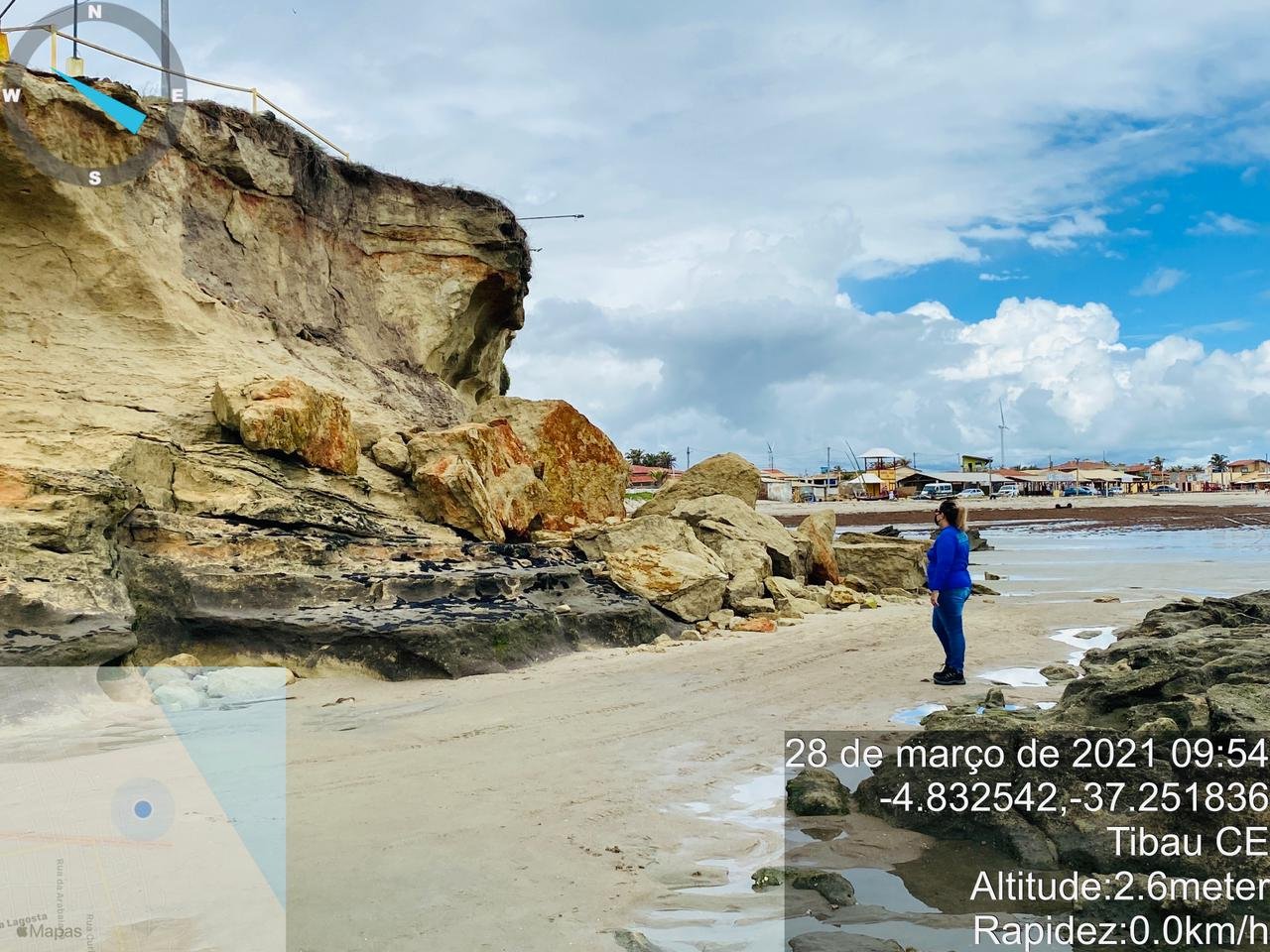 A equipe de fiscalização do Idema realizou neste domingo (28) uma ação de vistoria no município de Tibau, na Região Oeste do Estado. Durante a inspeção no trecho conhecido como Pedra do Chapéu, ponto turístico, foi averiguado que a área afetada vem sofrendo um processo erosivo muito grande, uma ação antrópica (realizada pelo homem) e da natureza que têm intensificado os deslizamentos de pedras.