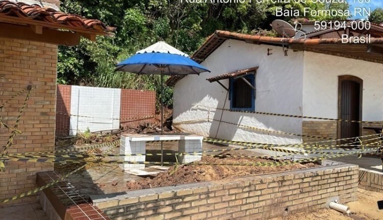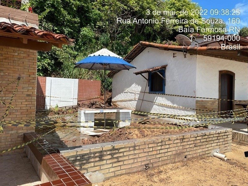 Durante a vistoria, fiscais do Idema identificaram duas construções irregulares na parte superior da falésia. A fiscalização notificou os proprietários, para que eles compareçam o Idema e tenham as orientações necessárias.