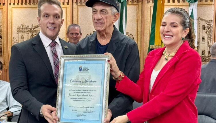 O cantor e compositor Raimundo Fagner recebeu o Título de Cidadão Natalense em sessão solene no plenário da Câmara Municipal de Natal na manhã desta quinta-feira (14). A proposição da cidadania é de autoria da vereadora Nina Souza (PDT).
