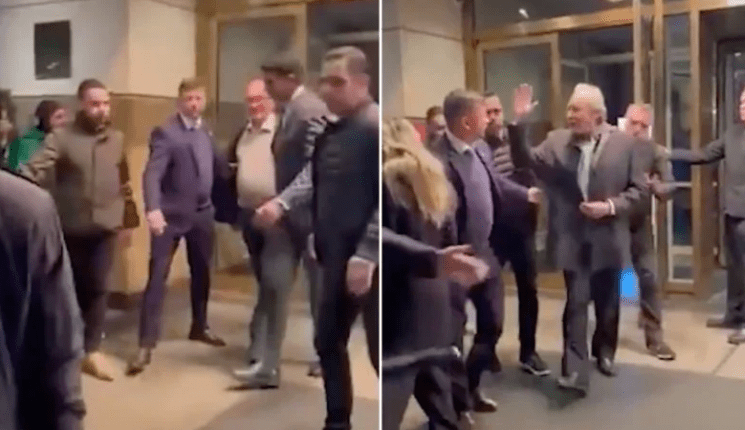 Os xingamentos se repetem, agora tendo Lewandowski, 74 anos, como alvo. Ao sair do hotel, o ministro se vira para as pessoas que estão aguardando na porta, acena para eles e sorri. O vídeo mostra que muitos dos que estão ali esperando vestem roupas nas cores verde e amarelo, além de bandeiras do Brasil.