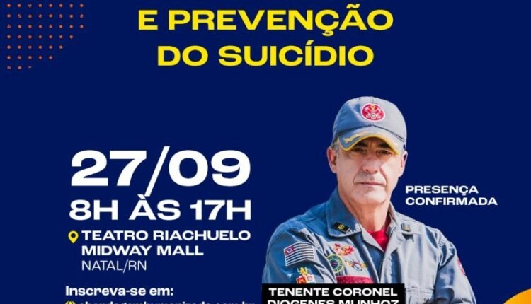 O Corpo de Bombeiros Militar do Rio Grande do Norte (CBMRN) em parceria com a Secretaria Estadual de Saúde Pública (SESAP), o Centro Universitário Rio Grande do Norte (UNI-RN), entre outros, realizam no próximo dia 27 de setembro, das 8h às 17h, o Seminário de Saúde Mental e Prevenção do Suicídio. O evento gratuito faz parte da programação do Setembro Amarelo, mês dedicado ao tema, e será realizado no Teatro Riachuelo, em Natal.