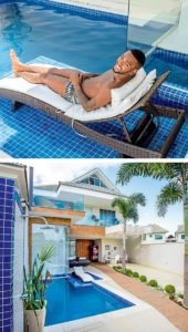 O imóvel, de três andares, tem quatro suítes e custou 2 milhões de reais. “Pedi desconto, mas não ganhei”, diverte-se. “Nunca imaginei morar numa casa assim”, diz ele, que cresceu no Morro do Borel. “Quando passei a ganhar dinheiro, não me deslumbrei. Morava em barraco, levantei minha casa e investi”, diz.