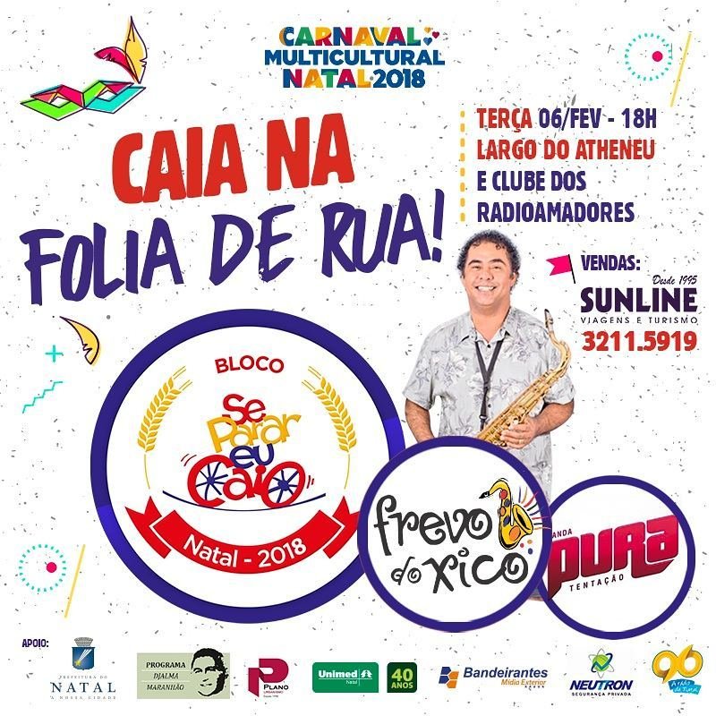 Pioneiro na nova geração de blocos do carnaval da capital potiguar, o “Se Parar Eu Caio” já está pronto para sair às ruas na terça, dia 06/02, abrindo o Carnaval Multicultural de Natal. A festa começa com a concentração no Largo do Atheneu e depois os foliões percorrem as ruas de Petrópolis e Tirol, ao som da Orquestra Frevo do Xico.