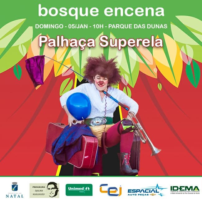 O fim de semana está repleto de diversão no Parque das Dunas com diversas atrações para toda a família. Além do retorno dos projetos Bosque Encena e Som da Mata, o anfiteatro Pau-brasil também será palco para a 2ª edição do projeto “Se Amostra Palhaçada”. O projeto acontece de 3 a 6 de janeiro, com apresentações gratuitas, em três locais (Tecesol, Parque das Dunas e Praça do Disco Voador/Ponta Negra).