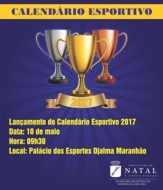 Federações, entidades ligadas ao esporte e representantes de centros desportivos vão se reunir na manhã desta quarta-feira (10), às 9h30, no Palácio dos Esportes Djalma Maranhão para o lançamento do calendário esportivo municipal de 2017. O evento tem por objetivo apresentar o cronograma anual de eventos esportivos da Cidade do Natal que serão realizados pela Prefeitura do Natal por intermédio da Secretaria Municipal de Esporte e Lazer (SEL),