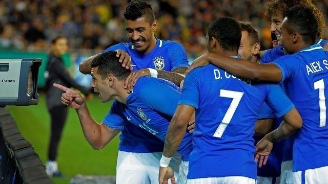 A “peneira de luxo” de Tite para analisar possíveis convocados para a Copa do Mundo teve bons momentos. O Brasil goleou a Austrália por 4 a 0, em Melbourne, gols de Diego Souza (duas vezes), Thiago Silva e Taison, e pôde esclarecer algumas dúvidas do treinador. E ampliar outras. Sem encantar, a equipe se aproveitou do erro adversário nos primeiros segundos, e das mudanças e o cansaço na etapa final, para vencer com segurança. Entre aqueles que precisam cavar lugar na lista, destaque para Rodrigo Caio, Taison e Diego Souza. Jogadores garantidos, ou quase, como Paulinho, Coutinho, Fernandinho e Willian, foram o suporte da equipe enquanto estiveram em campo. David Luiz, como volante, deu assistência para um gol impedido e uma cabeçada na trave, mas mostrou-se impaciente na marcação, com um número excessivo de botes (tentativas de roubar a bola) que resultaram em faltas.