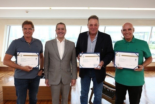 Em reconhecimento aos anos de contribuição ao futebol brasileiro, ao comprometimento e dedicação à profissão de técnico de futebol, a CBF Academy entregou a Licença Honorária para mais três treinadores nesta terça-feira (13). Abel Braga, Oswaldo de Oliveira e Valdir Espinosa foram homenageados e receberam seu certificado das mãos de Rogério Caboclo, diretor-executivo de gestão da CBF, na sede da entidade, no Rio de Janeiro.