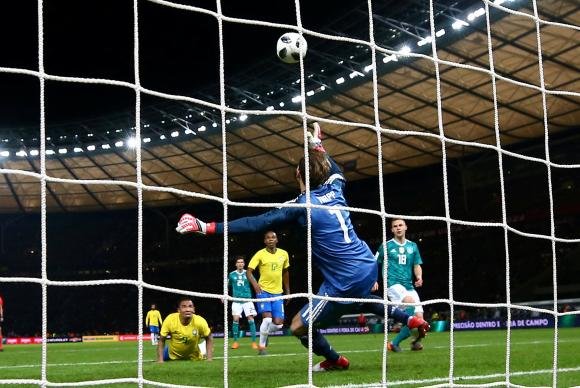 Seguro, o time comandado por Tite começou o jogo um pouco temeroso, mas com 10 minutos de partida equilibrou o confronto, se mantendo firme na marcação e dando poucas chances de ataque aos alemães. Com o jogo controlado em campo, a seleção teve as melhores chances e, no final do 1º tempo, o craque Gabriel Jesus, sozinho na área, recebeu um cruzamento de Willian pela esquerda e cabeceou no meio do gol. O goleiro Trapp chegou a espalmar a bola, mas ela cruzou a linha de fundo e abriu o placar.