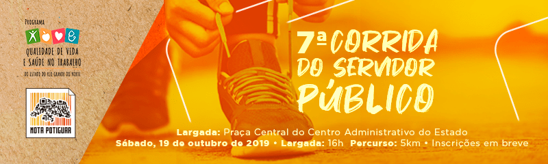 Corredores de todo o Rio Grande do Norte, em especial os servidores públicos estaduais, já podem se organizar para participar da 7ª Corrida do Servidor Público, iniciativa do Governo do Estado, por meio do Programa Estadual de Qualidade de Vida e Saúde no Trabalho (PQVST). As inscrições iniciam no dia 12 de setembro e os atletas terão a oportunidade de se inscrever pessoalmente, na recepção da Escola de Governo, ou através do site https://ingressos84.com.br.