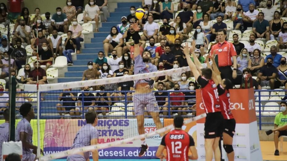 O Sesi-SP segue invicto na Superliga Masculina de Vôlei 2021/22. O time comandado pelo técnico Anderson Rodrigues conquistou a terceira vitória em três jogos na noite deste domingo, sobre o Funvic Natal, por 3 a 1 – parciais de 25-21, 19-25, 25-21, 25-12 -, no Ginásio Nélio Dias, em Natal, no encerramento da terceira rodada do turno, e agora, com 8 pontos, divide a liderança da competição com o Sada Cruzeiro – que leva a melhor no saldo de sets e ocupa a primeira colocação.