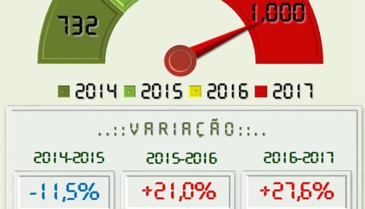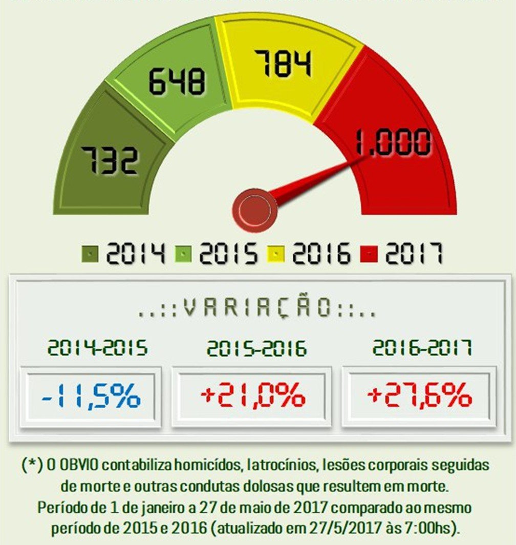 Em comparação ao mesmo período do ano passado, ou seja, levando em consideração a quantidade registrada de pessoas vítimas de homicídio entre 1º de janeiro e 27 de maio de 2016, o ano de 2017 já contabiliza um crescimento de 27,6%.