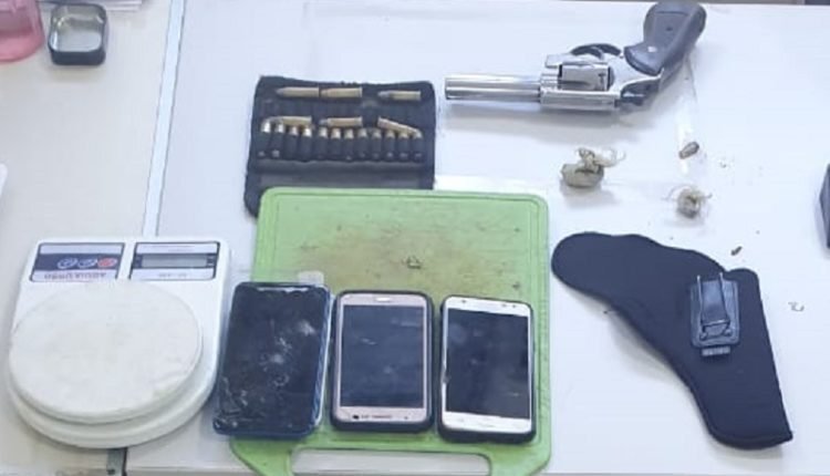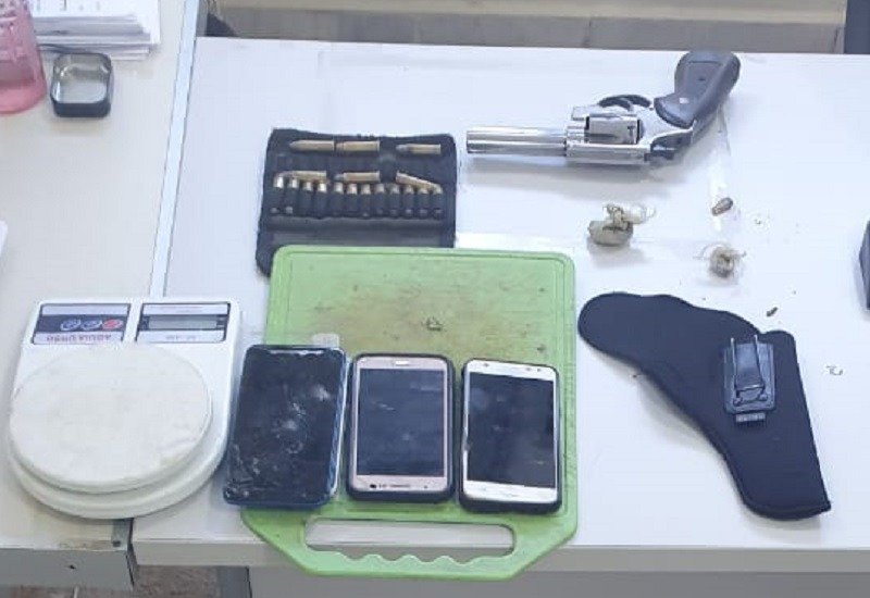 Após receber uma denúncia, de que havia um possível ponto de tráfico de drogas, próximo a uma fábrica de Refrigerantes, às margens da BR-101, na zona Rural do município citado, os policiais se deslocaram até o local e lá encontraram um indivíduo armado com 01 Revólver Cal.38 da marca Rossi, com 06 munições intactas e mais 12 sobressalientes. No interior de sua residência também foram encontrados 02 tabletes de Maconha, 01 balança de precisão, 03 aparelhos de telefone celular e 02 aves silvestres (Papagaio e Sibite) e 01 motor de uma motocicleta.