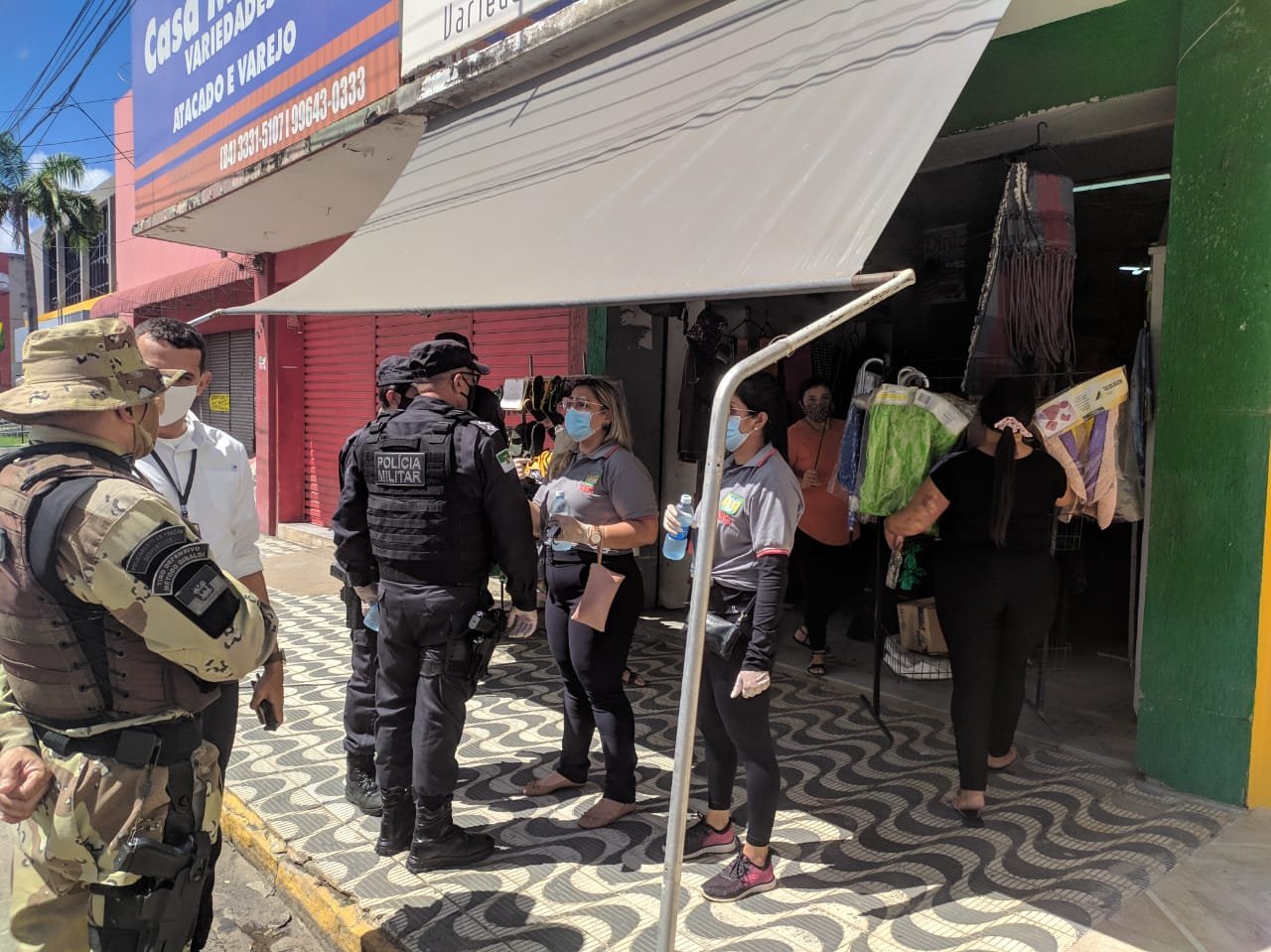 Polícia Militar, Corpo de Bombeiros e Prefeitura Municipal de Assu promoveram, na manhã desta quarta-feira (10), a Operação Pacto pela Vida, que orientou cidadãos e fiscalizou o comércio local para o cumprimento do decreto do Governo Estadual diante da pandemia da Covid-19. Na ocasião, os policiais do 10º Batalhão de Polícia Militar e os bombeiros trabalharam em conjunto com o Núcleo de Vigilância Sanitária do município, no intuito de instruir a e acatar as normas estaduais de manutenção exclusiva dos serviços essenciais. “A Polícia Militar tem trabalhado diuturnamente no enfrentamento a Covid-19 em parceria com todos os 167 municípios do Estado. A nossa principal missão é orientar, porém, em casos de descumprimento do decreto estadual, daremos prosseguimento as penas estabelecidas”, afirmou Coronel Castelo Branco, da Polícia Militar. A diretora do Núcleo de Vigilância Sanitária da Prefeitura Municipal de Assu, Ana Cleide, ressaltou o caráter educacional da Operação. “A intenção é prezar pela vida, por isso, saímos as ruas da cidade para instruir, uma vez que o decreto estadual possui uma maior rigidez em relação ao decreto municipal”, disse. Responsável por realizar vistorias na parte de comércio considerada essencial, o Cabo Half, do Corpo de Bombeiros, reitera a importância da população estar consciente neste momento. “Nós solicitamos que a população mantenha as medidas de segurança instauradas pelo decreto estadual, que tenha continuidade o isolamento social”, completou. Ao mesmo tempo, a operação ocorreu nas outras 12 cidades que são cobertas pelo 10° Batalhão de Polícia Militar.