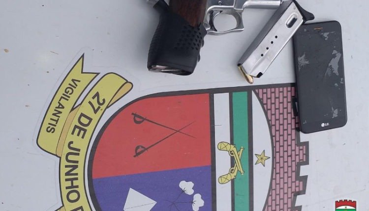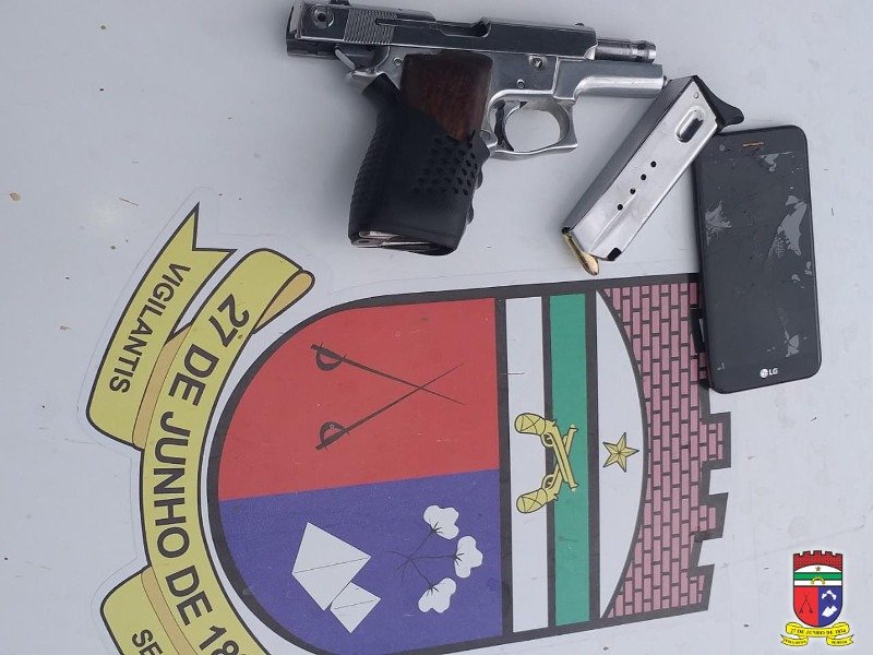 Durante a abordagem, os militares encontraram com o suspeito uma pistola calibre 9mm e 23 munições do mesmo calibre.