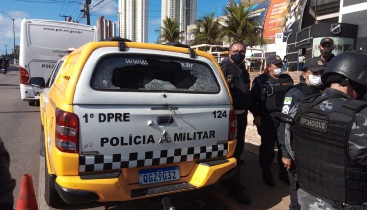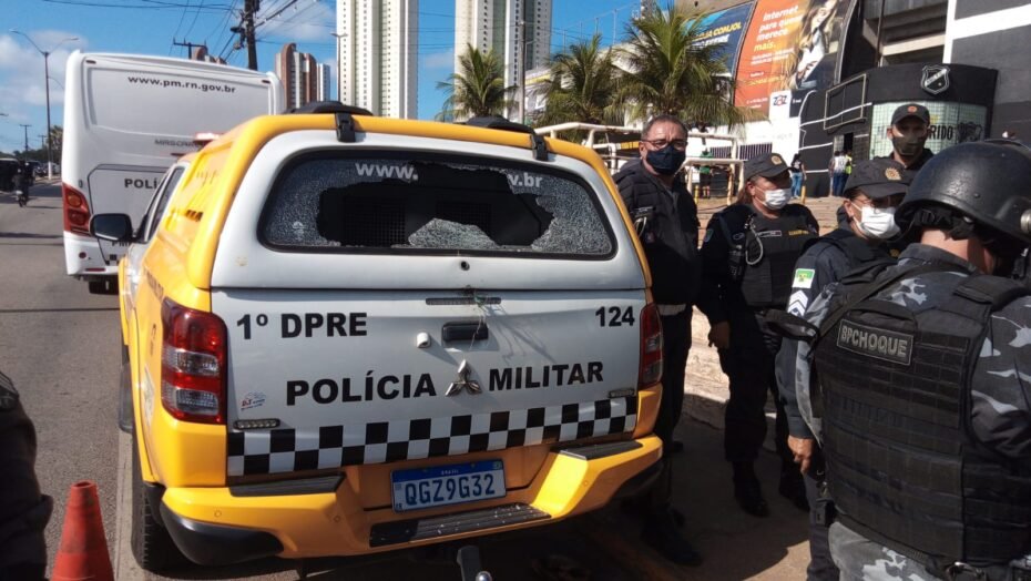 Uma viatura teve o vidro traseiro danificado. Algumas pessoas jogaram pedras e garrafas na equipe policial, que respondeu com balas de borracha e bombas de efeito moral. Antes disso, a PM prendeu quatro torcedores envolvidos em uma confusão na BR-101, próximo ao Pórtico de Natal. As “torcidas” provocaram brigas na BR-101, na altura do Assaí Atacado, e motoristas precisaram invadir a contramão para escapar da confusão. As imagens foram registradas por moradores de condomínios às margens da rodovia, que relataram ter ouvido os barulhos de explosões.Advertisementabout:blank