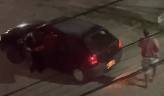 VÍDEO: Homem se desespera ao ter carro roubado e bandido atira contra ele em Natal