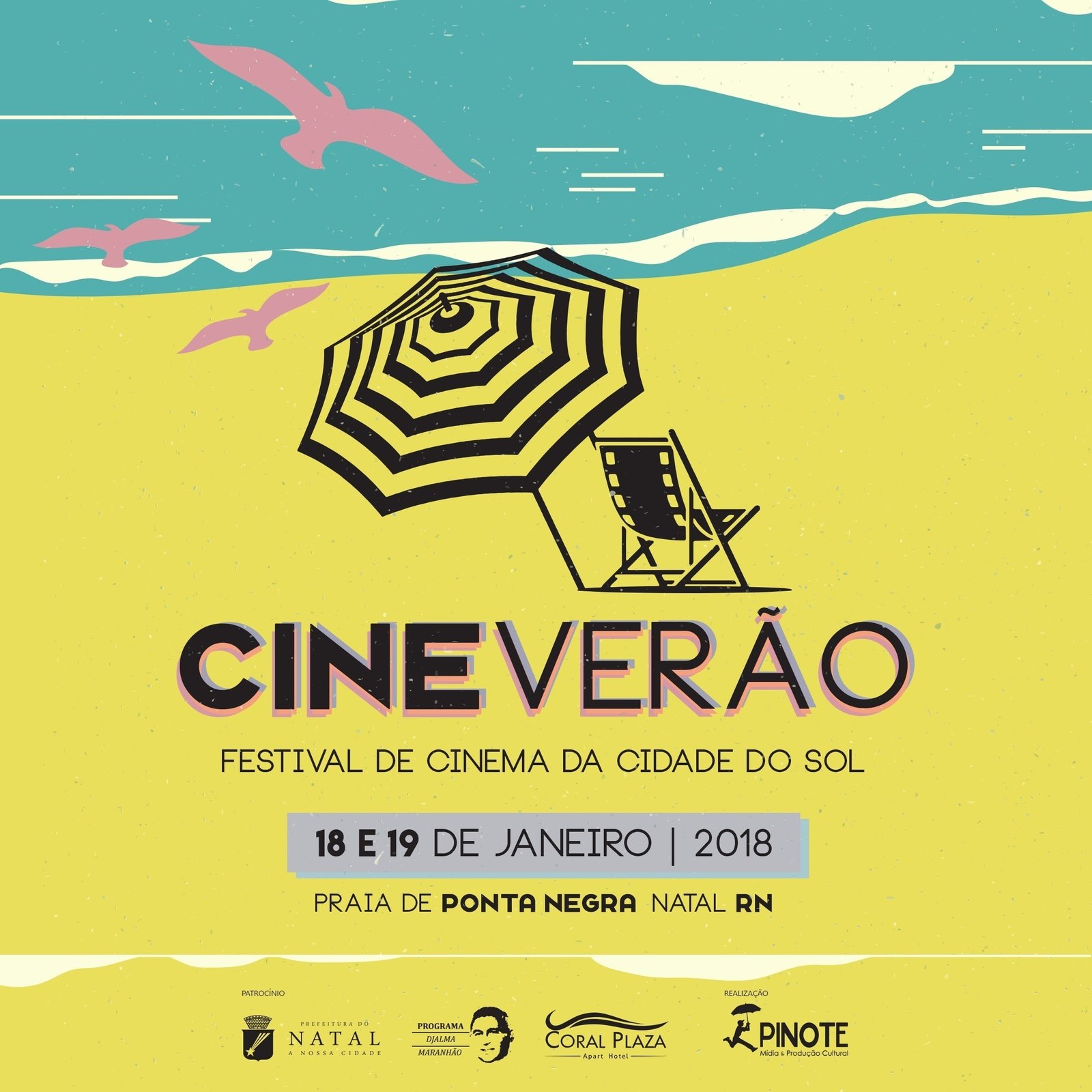 O projeto Cine Verão é uma realização da Pinote Produções, com o patrocínio da Prefeitura do Natal, Programa Djalma Maranhão e Coral Plaza Apart Hotel e apoio do Astral Sucos, Graphicaria, Silk Subli, Bureaut Digital, Drink Up, Megalume e RN Bottons.