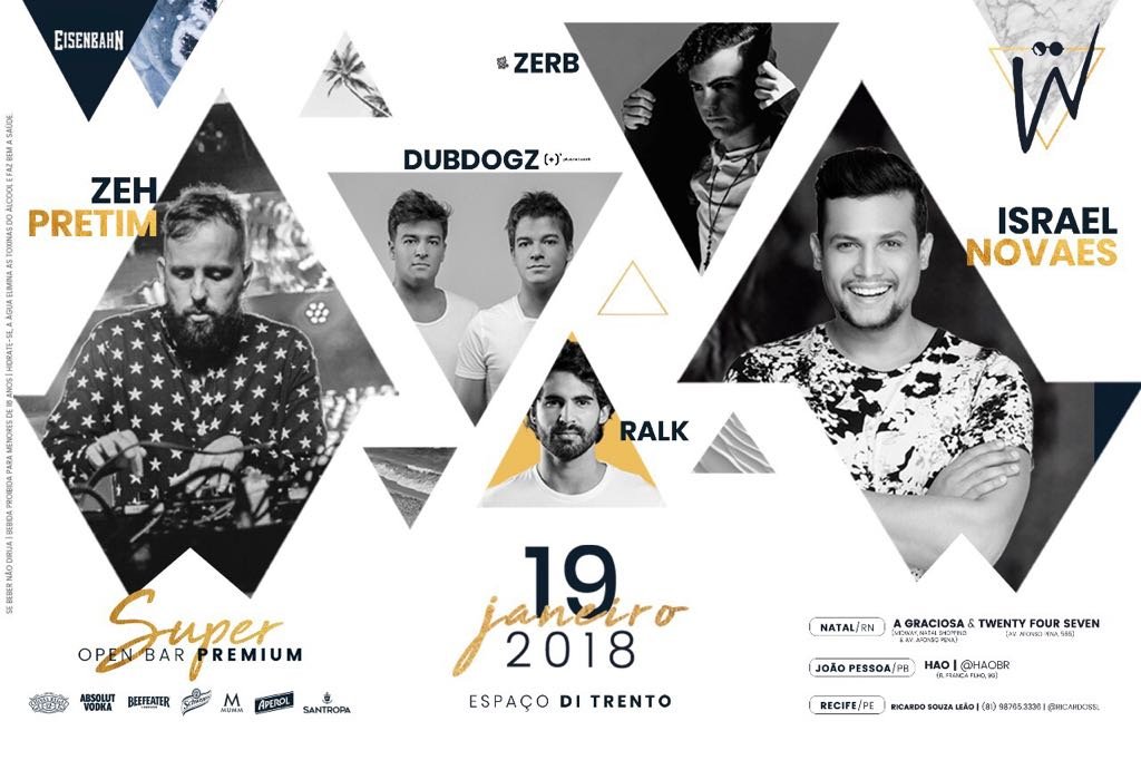 Atrações: Zeh Pretim, Israel Novaes, Zerb, Ralk e Dubdogz.