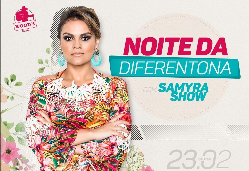 Dona de uma voz impactante e ao mesmo tempo inconfundível, a cantora Samyra Show retorna nesse fim de semana a Woods Natal. A cearense se apresenta sexta, dia 23, na festa “Noite da Diferentona”. A noite terá também os sucessos de Zé Neto e Diego.