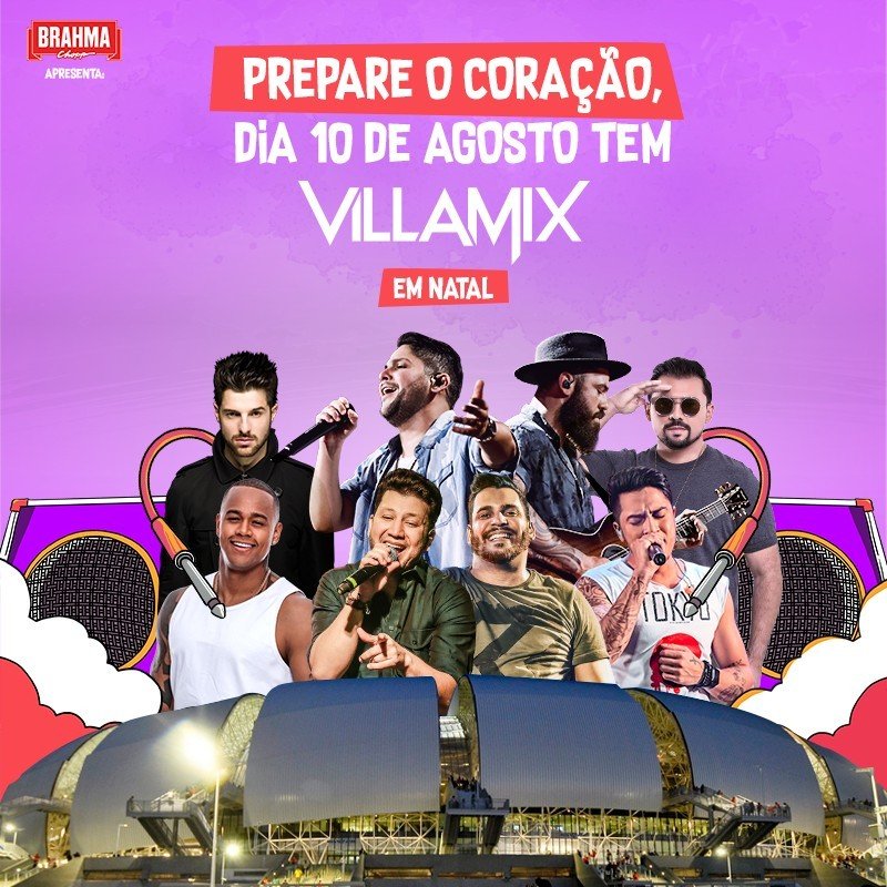 Falta pouco para a realização de mais uma edição histórica do Villa Mix, maior e melhor festival de música brasileira, em Natal. Em menos de um mês, no dia 10 de agosto, na Arena das Dunas, o festão promete superar as expectativas do público ao som de grandes artistas e com mega estrutura. O line up de peso desta edição do festival, com as maiores atrações musicais da atualidade, que vão do sertanejo à música eletrônica, contará com Jorge e Mateus, Cleber e Cauan, Xand Avião, Léo Santana, Jefferson Morais e Alok. Os ingressos estão à venda na loja Noha, no Midway Mall (Piso 3), e no site www.ticmix.com.br. Mais informações: Telepesquisa: (84) 3026-3232 e www.carnatal.com.br.