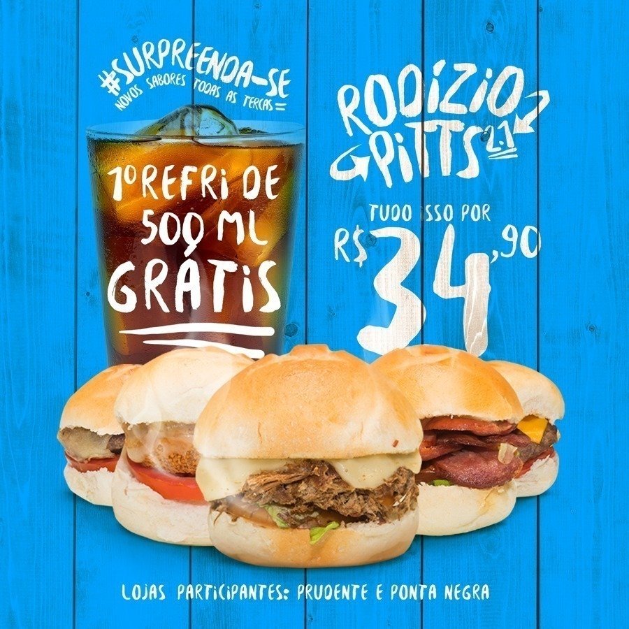 Próxima terça, dia 17, o Pittsburg traz de volta o seu famoso rodízio de sanduíches e, mais uma vez, com novidades. Toda semana terão novos sabores que vão surpreender os clientes e o primeiro copo de refrigerante (500ml) sairá grátis. Outra novidade é que agora os clientes que desejarem podem comprar antecipadamente com desconto. Além dos tradicionais mini-sanduíches, o rodízio tem também batata frita, chips de macaxeira e molhos. Tudo isso por apenas R$ 34,90. O rodízio continua nas terças, das 18h às 22h. As lojas participantes são da Prudente de Morais e Ponta Negra.