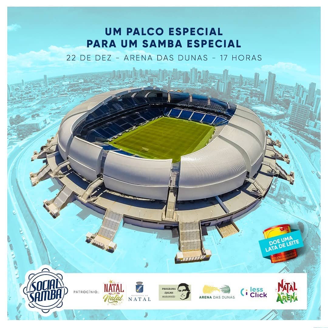 A retirada de ingressos para a Social Samba já começou. A entrega está acontecendo na loja Sport Master do Midway Mall. A festa será dia 22 de dezembro na Arena das Dunas dentro da programação oficial do Natal da Arena, projeto integrante da programação do Natal em Natal, promovido pela Prefeitura do Natal.